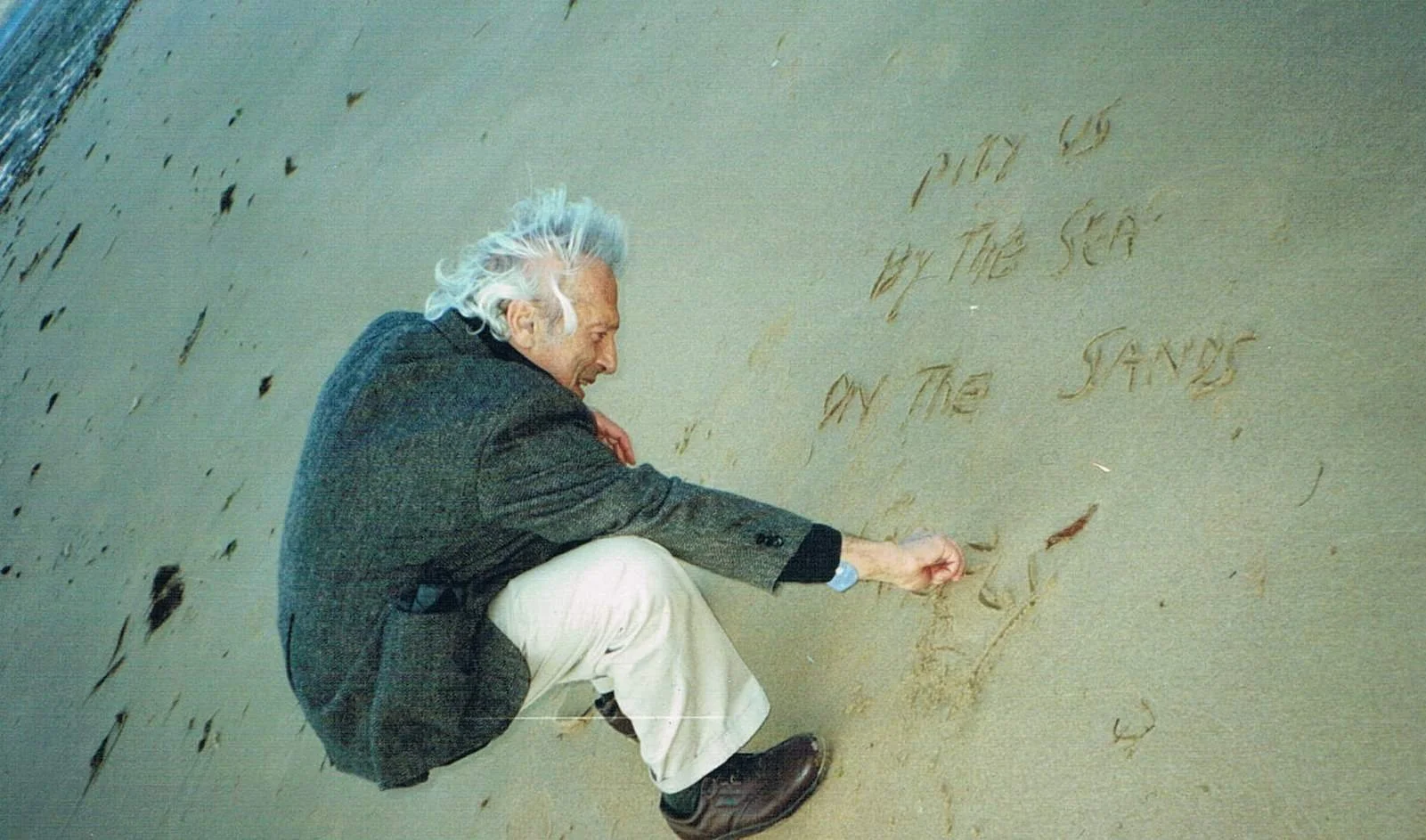 Visiting poet Sam Menashe writing his poem 'Pity Us' on the Falcarragh strand. The photo is used in his collection for the Library of America's AMERICAN POETS PROJECT when he won the first 'Neglected Masters Award'
